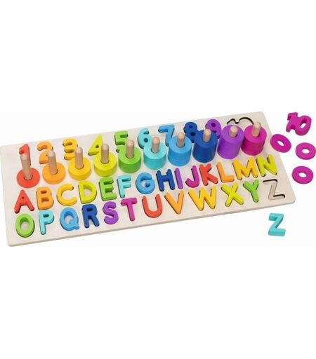Ist es Lernen? Ist es spielen? Nein, es ist ein spielerisches Lernen. Bunte Buchstaben aus Holz müssen in die entsprechenden Vertiefungen gelegt werden. Und den Ziffern werden die entsprechende Zahl an Ringen zugeordnet. So hilft ein Puzzlebrett bei den ersten Schritten in die Welt der Buchstaben und Zahlen. Und das macht mit diesem Holzspielzeug sogar Spaß. ...