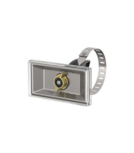 Flamco Universalhalter F55002Schilderhalter aus Edelstahl 1.4016 und wärmebeständigem Kunststoffmit Spannband bis 2" und KlarsichtabdeckungSchilderteller zur Dämmung der Rohrleitungen abnehmbarwerkzeuglose MontageSchildmontage vertikal oder horizontal möglich ...
