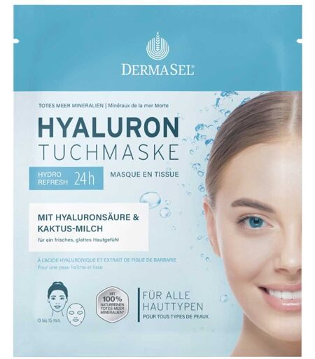 Anwendungsgebiet von Dermasel Hyaluron TuchmaskeErfrischende Tuchmaske – 24h Feuchtigkeit & neue Strahlkraft mit Dermasel Hyaluron Tuchmaske.Ein echter Durstlöscher für Ihre Haut! Die intensiv hydratisierende Pflegeformel mit Hyaluronsäure, Kaktusfeigenextrakt und naturreinen Totes-Meer-Mineralien versorgt Ihre Haut bis zu 24 Stunden mit Feuchtigkeit. Sie fühlt sich erfrischt, geglättet und wunderbar belebt an – für einen strahlenden, gesunden Teint.Wirkstoffe / Inhaltsstoffe / ZutatenDermasel Hyaluron Tuchmaske enthält:Aqua, Glycerin, Prunus Amygdalus Dulcis Oil, Coco-Caprylate, Dicaprylyl Carbonate, Polyglyceryl-3 Methylglucose Distearate, Phenoxyethanol, Maris Sal (Dead Sea Salt), Panthenol, Xanthan Gum, Sclerotium Gum, Parfum, Ethylhexylglycerin, Sodium Hyaluronate, Helianthus Annuus Seed Oil, Tocopherol, Opuntia Ficus-Indica Fruit Extract, Linalool, Benzyl Alcohol, Benzyl Salicylate, Pantolactone, Sodium Benzoate, Citric Acid.GegenanzeigenBei bekannter Überempfindlichkeit gegenüber einem der oben genannten Inhaltsstoffe sollte das Produkt nicht angewendet werden.DosierungAnwendungsempfehlung von Dermasel Hyaluron Tuchmaske:1. Tuchmaske entnehmen, entfalten und auf das gereinigte Gesicht auflegen und Kontur des Gesichts anpassen.2. Entspannen und Maske ca. 10 bis 15 Minuten einwirken lassen.3. Tuchmaske abnehmen. Rückstände sanft einmassieren oder mit einem Kosmetiktuch entfernen.Dermasel Hyaluron Tuchmaske können in Ihrer Versandapotheke www.apotheke.at erworben werden. ...
