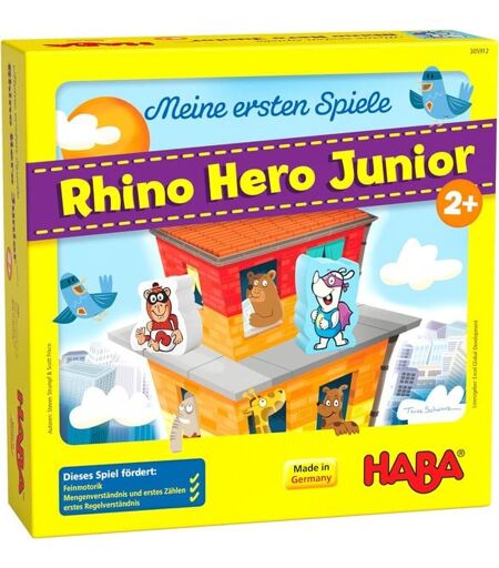 Den perfekten Einstieg in die erfolgreiche Kinderspiel-Reihe Rhino Hero bietet „Meine ersten Spiele – Rhino Hero“ von HABA! Als echter Superheld geht es für Rhino Hero Junior immer hoch hinaus und dabei nimmt er kleine Weltentdecker ab 2 Jahren gleich mit: In drei verschiedenen Spielen üben Kinder beim Zuordnen und Stapeln der Stockwerke die Feinmotorik sowie erstes Zählen und Mengenverständnis. Im dritten Spiel trainieren sie zusätzlich ihr Gedächtnis. Stockwerk für Stockwerk steigen dabei die Spaß- und Lernkurven – bis das heldenhafte Nashorn ganz oben ankommt und die Kinder gemeinsam gewinnen. „Meine ersten Spiele – Rhino Hero“ von HABA steht für extragroßen Spaß beim Stapeln und Zuordnen. ...