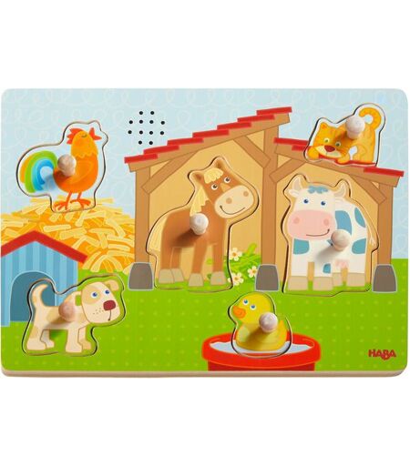 HABA 303179 - Sound-Greifpuzzle, Auf dem Land, Bauernhof, Holzpuzzle mit Tierstimmen, Kinderpuzzle