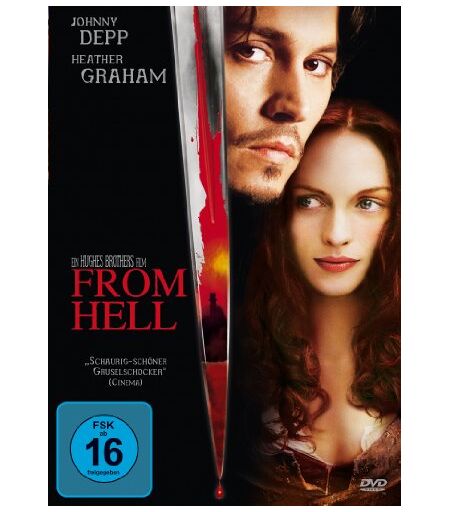AspectRatio : 2.35 : 1, AudienceRating : Freigegeben ab 16 Jahren, Brand : FOX, Binding : DVD, Label : Twentieth Century Fox Home Entert., Publisher : Twentieth Century Fox Home Entert., NumberOfDiscs : 1, RegionCode : 2, NumberOfItems : 1, Format : Dolby, Feature : Darsteller : Carey Thring, medium : DVD, publicationDate : 2002-01-01, releaseDate : 2002-11-07, runningTime : 117 minutes, theatricalReleaseDate : 2001-10-19, writers : Alan Moore, Eddie Campbell, actors : Johnny Depp, Heather Graham, Sir Ian Holm, directors : Albert Hughes, Allen Hughes, music : Trevor Jones ...