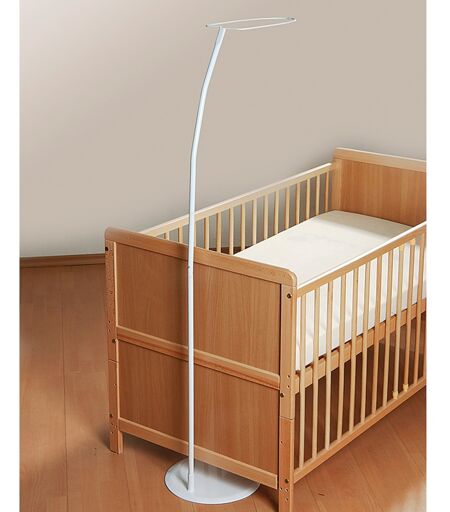 Ein schützender und wohliger Betthimmel schafft eine behagliche Schlaf-Atmosphäre für das Baby. Mit der freistehenden Himmelstange von Alvi lässt sich an jedes Kinderbett ein Himmel zaubern. stabile Himmelstange 3-fach verstellbare Höhe - von 150 bis 165 cm mit breitem Standfuß aus Metall weiß lackiert Die Himmelstange aus Metall ist mit einem breiten und schweren Standfuß versehen, der für Stabilität und Sicherheit sorgt. Es ist möglich, die Himmelstange flexibel an jedes Bettchen oder an eine Wiege zu stellen. Die passende Höhe ist sehr leicht einzustellen. Anschließend kann auf der Krone ein hübscher Betthimmel angebracht werden, der das Baby bestens vor grellem Licht und Zugluft schützt. Die Himmelstange ist ein tolles Accessoire für die liebevolle Gestaltung einer gemütlichen Schlafumgebung für Babys. ...