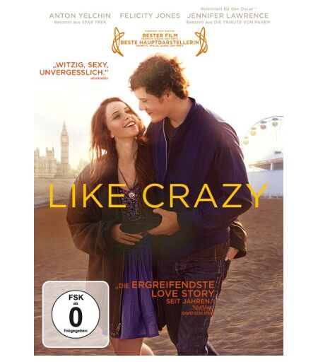 AspectRatio : 1.33 : 1, AudienceRating : Freigegeben ohne Altersbeschränkung, Binding : DVD, Label : Paramount, Publisher : Paramount, RegionCode : 2, NumberOfItems : 1, Format : Dolby, medium : DVD, releaseDate : 2012-10-18, runningTime : 86 minutes, theatricalReleaseDate : 2011-01-01, actors : Anton Yelchin, Felicity Jones, Jennifer Lawrence, directors : Drake Doremus, music : Dustin O'Halloran ...