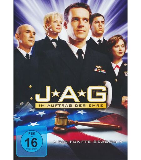 Die Erfolgsserie „JAG“ kehrt mit Schallgeschwindigkeit zurück und zeigt alle Episoden der fünften Season auf DVD! In dieser Season sind Harm (David James Elliott) und Mac (Catherine Bell) wieder vereint, denn Harm verabschiedet sich von seiner Pilotenkarriere und kehrt in die Büros des „JAG“ zurück. Keinen Moment zu früh, denn Rechtsfälle auf Flugzeugträgern, U-Booten und sogar in einem entführten Flugzeug fordern ihre gesamte Aufmerksamkeit! Und während Admiral Chegwidden (John M. Jackson) die Romantik entdeckt und sich Bud (Patrick Labyorteaux) und Harriet (Karri Turner) darauf vorbereiten, Eltern zu werden, reist die gesamte Crew nach Australien. Mach dich bereit zur bisher besten Season von „JAG“! Episoden: Disc 1: 01 Den Tod im Visier 02 Gegen alle Regeln 03 Blinder Passagier 04 Die Rückkehr Disc 2: 05 Ein Wurf entscheidet 06 Tödiche Visionen 07 Bomben auf New York 08 Drogenrazzia in Panama Disc 3: 09 Verräterische Worte 10 Tragische Landung 11 Sein letzter Einsatz 12 Ein alter Fall im neuen Licht Disc 4: 13 Der Todeskandidat 14 Höllenfahrt 15 Wiedersehen macht Freude - Teil 1 16 Wiedersehen macht Freude - Teil 2 Disc 5: 17 Aussage gegen Aussage 18 Die Brücke von Kang So Ri 19 Leere Versprechungen 20 Tod in der Absprungzone Disc 6: 21 Hexentanz 22 Das Geheimnis von Peal Harbor 23 Ende eines Hochstaplers 24 Tochter eines Mörders 25 Grabenkämpfe ...
