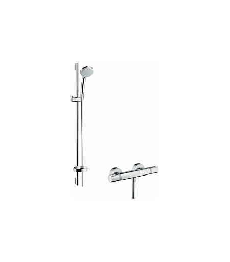 hansgrohe Brause Set Croma 100 Vario 27035000 chrom, DN 15, Stange 0,90 m bestehend aus: Croma 100 Vario Handbrause mit Unica'C Set 0,90 m 27771000, Ecostat Comfort Brause Thermostat Aufputz, DN15 13116000 ...