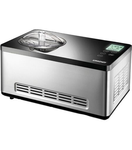 Die Eismaschine Gusto von Unold mit vollautomatischem, selbstkühlendem Kompressor kann bis zu zwei Liter köstliche Eiscreme für eine ganze Feinschmecker-Familie auf Wunsch schnell und zuverlässig herstellen. Die Eismaschine Gusto sorgt mit einem Gefrierbereich mit bis zu -35°C für die richtige Temperatur und somit ist ein Vorgefrieren im Gefrierschrank nicht nötig. Mit vorgekühlten Zutaten ist Sahneeiscreme im entnehmbaren Edelstahl-Eisbehälter in circa 30 Minuten fertig. Die Deckelöffnung ermöglicht das Zufügen von weiteren Zutaten. Über das Touch-Bedienfeld wird zum Beispiel der Timer für 5 bis 60 Minuten eingestellt. Wird die Eiscreme nicht innerhalb von 10 Minuten nach dem Fertig-Signalton entnommen, wird die automatische Kühlfunktion zugeschaltet. Die Eismaschine Gusto hat ein elegantes und robustes Edelstahlgehäuse und ist mit einem robusten Motor ausgestattet, der auch den Dauerbetrieb nicht scheut. Dank des entnehmbaren Eisbehälters aus Edelstahl lässt sich die Eismaschine Gusto ganz einfach reinigen. ...
