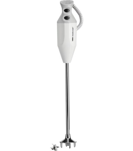 Mit dem ESGE-Zauberstab G 350 Gastro Max kommt ein leistungsstarkes Kraftpaket in die Profi-Küche. Die besonders große Eintauchtiefe bis ca. 39cm, zwei Schaltstufen, die Aufsteckzentrierung und der Twinschalter sorgen für besonders hohen Bedienkomfort. Auch die Kapazität für die Verarbeitung von bis zu 45 Litern Flüssigkeit (bei ca. 45cm Gefäßdurchmesser) wissen professionelle Köche zu schätzen. Das Multimesser sorgt für Top-Ergebnisse, denn es quirlt, hackt, rührt, püriert, passiert und mixt. Der robuste, langlebige AC-Motor mit 350 Watt "Made in Switzerland" liefert per Sicherheits-Twin-Schalter zwei Tempo-Stufen (18.000 für alle leichten, luftigen Sachen oder 22.000 U/min für alle dickflüssigen, harten Lebensmittel und große Mengen). Das Spiralkabel ist bis zu 350cm ausziehbar und sorgt so für Bewegungsfreiheit bei der Zubereitung, auch in Großküchen. ...