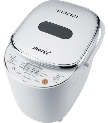 Mit dem Brotbackautomat BM 3 von Steba lassen sich leckeres Brot, Kuchen, Marmelade und vieles mehr zubereiten. 12 Programme und drei separate Einstellungen für die gewünschte Bräunungsstufe sorgen für optimale Ergebnisse. Praktisch beim Brotbackautomat BM 3 ist die herausnehmbare Brotbackform mit Antihaftbeschichtung. Über Touch-Control mit großem Display lässt sich jedes Programm bequem einstellen und durch das Sichtfenster im Deckel kann das Backen des eigenen Brotes gemütlich beobachtet werden. Noch bequemer geht es mit der Timerfunktion und Zeitvorwahl, die bis zu 13 Stunden einstellbar ist. Nach dem Backen wird das frische Brot noch bis zu einer Stunde warmgehalten. Im Lieferumfang des BM 3 sind Rezeptideen sowie ein Messbecher und Messlöffel enthalten. ...