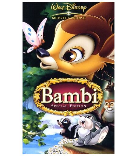AspectRatio : 1.33 : 1, AudienceRating : Freigegeben ohne Altersbeschränkung, Binding : Videokassette, Label : Walt Disney, Publisher : Walt Disney, Format : Dolby, medium : Videokassette, releaseDate : 2005-03-03, runningTime : 68 minutes, theatricalReleaseDate : 1942-08-21, writers : Felix Salten, directors : David D. Hand, James Algar, Samuel Armstrong, Graham Heid, Bill Roberts, Paul Satterfield, Norman Wright, music : Frank Churchill, Edward H. Plumb ...