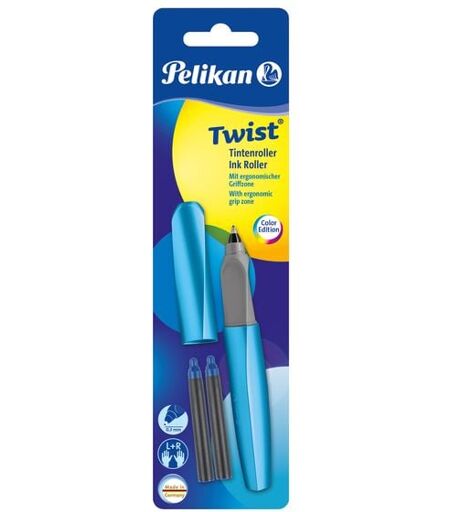Blisterkarte mit 1 Roller inkl. Tintenrollerpatronen. Twist - das neue Trend-Schreibgerät für junge Leute. Echte Hingucker mit trendigen Farbkombinationen. Trendige Roller in gedrehtem Look. Liegt durch die ergonomische Form perfekt in der Hand. Universell für Rechts- und Linkshänder. Blaue Schreibfarbe löschbar. Made in Germany. ...