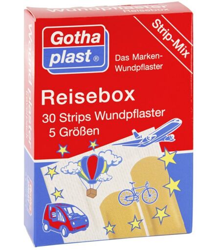 Anwendungsgebiet von Gothaplast Wundpfl.reiseboxMit der Gothaplast Wundpfl.reisebox erhalten Sie 30 Pflasterstrips in 5 verschiedenen Größen. Die Qualitätspflaster sind besonders hautfreundlich, handlich und ein idealer Reisebegleiter. Die verschiedenen Pflastergrößen garantieren eine sachgerechte Anwendung und Versorgung von oberflächlichen Verletzungen der Haut wie Schürfwunden, Kratzern und kleineren Schnittwunden.Wirkungsweise von Gothaplast Wundpfl.reiseboxGothaplast Wundpfl.reisebox sind vielseitig einsetzbare Textilpflaster. Luft kann ungehindert bis zur Wunde vordringen. Die Pflaster unterstützen so den Regenerationsprozess, schützen dabei aber das geschädigte Gewebe vor Verschmutzung und nehmen austretendes Blut und Wundsekret auf. Wirkstoffe / Inhaltsstoffe / ZutatenProduktinhalt der Gothaplast Wundpfl.reisebox: