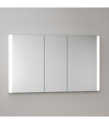 KEUCO Royal Atlas LED Spiegelschrank 120 x 71 x 11,5 cm mit 3 Türen, Unterputz, 211201450112 Eigenschaften: Wandeinbau-Montage 3 Drehtüren aus Kristall-Doppelspiegel mit Anschlagsdämpfung griffloses Design (Griffe auf Wunsch separat bestellbar) Korpus: Aluminium Korpusseite: Weiß-matt Korpusrückwand: HDF (weiß) 2 innenliegende Steckdosen (Typ F) 2x 3 höhenverstellbare Glasablagen (zusätzliche Ablagen separat bestellbar) erstklassige Qualität und Verarbeitung Made in Germany Bedienung: Bedienfeld mit kapazitiver Touch-Sensorik Ein-/Ausschalten über wahlweise über Bedienfeld oder Raumschalter möglich Beleuchtung: vertikale Beleuchtung Innenraumbeleuchtung Helligkeit: stufenlos dimmbar Lichtfarbe: 3000 Kelvin (warmweiß) Leuchtmittel: LED (Lebensdauer > 30.000 Stunden) Technische Daten: Leistungsaufnahme LEDs: 25 Watt Schutzart: ausstehend Anschluss: 220-240 V, 50/60 Hz Tiefe vor der Wand: 6 cm Abmessungen (BxHxT): 120 x 71 x 11,5 cm Hinweise: 3 Jahre Garantie (zusätzlich zur gesetzlichen Gewährleistung von 2 Jahren) 10 Jahre Ersatzteilversorgung Austausch der LED-Streifen mit Steckverbindungen durch Fachhandwerker kein Einbaurahmen nötig Wandausschnitt: B: 118,8-119,6 H: 69,6-70 T: min. 6,8 cm Lieferumfang: Spiegelschrank, Befestigung, Inneneinteilung, Leuchtmittel weitere Details: Breite:120cm Höhe:71cm Tiefe:11,5cm Farbtemperatur:3000K Lichtstrom:3240 Lumen Designer:Dominik Tesseraux Fassung:LED Leistung Leuchtmittel:27 Material Korpus:Aluminium Besonderheiten:mit Steckdose Eingebaute LED:Ja Leuchtmittel inklusive:Ja Lichtfarbe:warmweiß Lichtsteuerung:für Raumschaltung mit Ein-/Ausschalter mit Touchdimmer Ländervariante:Standard (Deutsche Norm) Montage:Unterputz Schalterposition:unten Steckdosenanzahl:2 Türanzahl:3 Zusatzbeleuchtung:mit Innenbeleuchtung Gewicht:40kg ...
