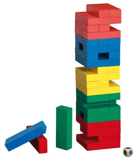 Kiefer, gefärbt, 60 Spielklötze, Maße 75 x 75 x 300 mm. Farbwürfel: Birke, 1 Stück, 16 mm. ...