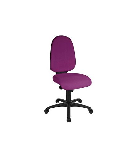 Mit dem Topstar Bürostuhl Syncro Pro 5, S500 G03 Stoff lila, Gestell schwarz sitzen Sie bequem!Bürotage können lang sein und eine gute Sitzgelegenheit ist daher umso wichtiger – werfen Sie daher unbedingt einen Blick auf den Topstar Bürostuhl Syncro Pro 5, S500 G03 Stoff lila, Gestell schwarz. Um sicherzustellen, dass dieses Modell zu Ihrem Bedarf passt, erhalten Sie hier alle wichtigen Informationen.Die Rückenlehne passt sich Ihrer Körperhaltung anMit der Synchron-Mechanik ausgestattet, hält die Rückenlehne bei unterschiedlichen Sitzpositionen immer den Kontakt zu Ihrem Rücken. Die Rückenlehne passt sich also Ihrer Körperhaltung an und ermöglicht ein dynamisches Sitzen.Alle Details zum Material und DesignMit seinem violetten Material bringt dieses Modell etwas Farbe in Ihre Räumlichkeiten. Das Material des Topstar Bürostuhls Syncro Pro 5, S500 G03 Stoff lila, Gestell schwarz besteht außerdem aus 100% Polypropylen. Das Fußkreuz besteht aus Kunststoff. Das Modell weist außerdem eine Scheuerfestigkeit von 60.000 Scheuertouren auf.Alle Informationen zur RückenlehneDie Rückenlehne besteht aus angenehmem Polstermaterial. Eine aufrechtere und gesündere Haltung wird durch die Lendenwirbelstütze gefördert, welche die untere Wirbelsäule unterstützt. Hierfür wirkt sie stabilisierend auf den unteren Bereich des Rückens, auf die Lendenwirbel. Passen Sie die Neigung und Höhe der Rückenlehne außerdem an Ihre Bedürfnisse an. Die Doppelrollen des Topstar Bürostuhls Syncro Pro 5, S500 G03 Stoff lila, Gestell schwarz sind hervorragend für Teppichboden geeignet.Unterstützung für Bandscheiben und BeckenAuf dem Bandscheibensitz steigt der hintere Sitzteil kräftig an und hierdurch werden die Bandscheiben und das Becken wirkungsvoll unterstützt. Der vordere Teil steigt leicht an, damit die komplette Sitzfläche genutzt werden kann und Sie nicht nach vorne rutschen. Nach Angaben des Herstellers kann man auf dem Topstar Bürostuhl Syncro Pro 5, S500 G03 Stoff lila, Gestell schwarz ohne Probleme bequem uneingeschränkt lange sitzen.Damit alles passtDer Topstar Bürostuhl Syncro Pro 5, S500 G03 Stoff lila, Gestell schwarz verfügt über eine Sitzhöhe von 45,0 - 55,0 cm, eine Sitzbreite von 48,0 cm und eine Sitztiefe von 48,0 cm. Ohne Probleme können Sie dieses Modell bis zu einer Körpergröße von 192,0 cm nutzen. Einer Belastung von bis zu 110,0 kg hält er ohne Probleme stand. Das Gewicht liegt außerdem bei 12,74 kg und der Durchmesser des Fußkreuzes beträgt 64,0 cm. Nur wenn diese Werte mit Ihren Vorstellungen übereinstimmen, ist dieses Modell für Sie geeignet. Passen Sie? Dann ist die Nutzung ohne Weiteres möglich.Mehr erfahren über die Marke TopstarTopstar produziert innovative Produkte zum Sitzen. Durch strenge Kontrollen im Prüflabor kann das Unternehmen qualitativ hochwertige Bürostuhlserien garantieren. Auf mehreren Produktionslinien kann das Unternehmen mehrere tausende Stühle pro Tag fertigen. Die Produkte werden alle in Deutschland gefertigt und entsprechen hohen... ...