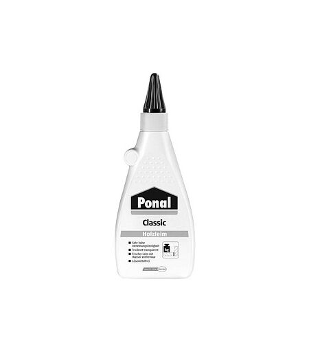 Der bewährte Klassiker – Ponal HolzleimDieser bewährte hochfeste Qualitäts-Holzleim von Ponal eignet sich hervorragend für alle Holzarten und Holzwerkstoffe. Nutzen Sie ihn für die Montageverleimung mit Dübeln, Nut und Feder etc., für die Fugenverleimung (Anleimer, Massivholz) oder für die Flächenverleimung von Schichtpressstoffplatten, Hartfaserplatten, Furnierkanten u. Ä. Der lösungsmittelfreie Holzleim kann aber auch bestens für viele Bastelarbeiten eingesetzt werden. Einfach den Ponal Classic einseitig und dünn auftragen, bei Hartholz und Stirnseite beidseitig, Teile zusammenpressen, solange der Leim feucht ist - und fertig.Der Ponal Classic Holzleim trocknet transparent und lässt sich in frischem Zustand auch ganz einfach wieder mit Wasser entfernen. Diesen gebrauchsfertigen, wasserbasierten Weißleim erhalten Sie günstig hier bei uns im Shop.Auf Ponal vertrauen auch die Profis.Bitte beachten Sie die Gefahren- und Sicherheitshinweise:Gefahrenhinweise: -Sicherheitshinweise:-P102: Darf nicht in die Hände von Kindern gelangen.-P101: Ist ärztlicher Rat erforderlich, Verpackung oder Kennzeichnungsetikett bereithalten.-P262: Nicht in die Augen, auf die Haut oder auf die Kleidung gelangen lassen.Signalwort: -Gefahrenklasse/-kategorie: - ...