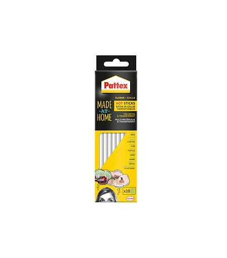 Klebespaß ohne Ende – mit Pattex Heißklebesticks Made at HomeAm besten Sie legen sich einen kleinen Vorrat an! Dann sind Sie in puncto kleben immer auf der sicheren Seite. Die Pattex Heißklebesticks sind geeignet für die Made at Home Klebepistole von Pattex. Hohe Klebekraft und saubere Verarbeitung garantiertMit Pattex entscheiden Sie sich für eine saubere Klebelösung: tropffrei beim Kleben, trocknet transparent und überzeugt mit maximaler Klebekraft nach nur 2 Minuten. Und auch das Bestücken mit den Pattex Heißklebesticks erfolgt kinderleicht - einfach in die dafür vorgesehene Öffnung schieben, fertig! Schon geht der Klebespaß weiter. Mit den Made at Home Sticks kleben Sie Holz, Papier, Pappe, Textil sauber und stark zusammen. Die Pattex Heißklebesticks erhalten Sie im preiswerten 10er Pack.Sparen Sie bares Geld - mit den Pattex Nachfüllpatronen Made at Home aus unserem Online-Shop! ...