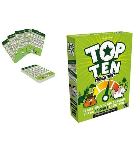 Es gibt immer 10 gute Gründe für ein episches Abenteuer! Mit Top Ten Adventures erwartet euch ein epischer Ableger des Party-Klassikers! Dieses Mal erlebt ihr 80 verschiedene Abenteuer mit fünf aufeinanderfolgenden Themen, die eine zusammenhängende Geschichte erzählen. Von Runde zu Runde, in denen der Käpten die absurden Antworten seiner Mitspieler in die richtige Reihenfolge bringen muss, erkundet ihr einen neuen Abschnitt des Abenteuers. Dabei müsst ihr euch manchmal auf die Antworten beziehen, die ihr zuvor gegeben habt, was für viele aberwitzige Momente sorgt. Macht euch bereit für Lachtränen und Zwerchfell-Muskelkater mit Top Ten Adventures! ...