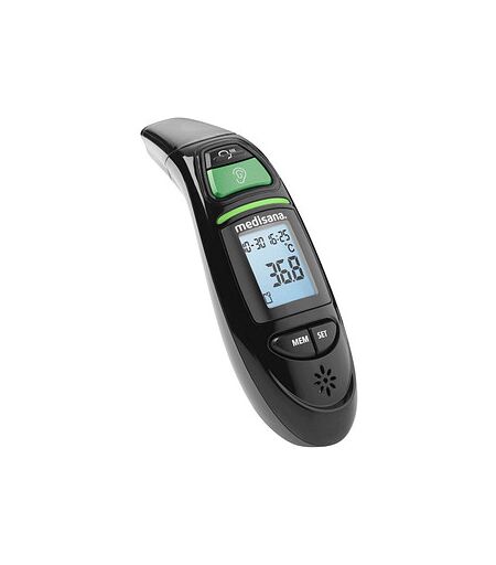 Kontaktlos Körpertemperatur messen mit dem Infrarot-Stirnthermometer TM 750 von medisanaFieber messen ist dank dem Infrarot-Stirnthermometer TM 750 von medisana spielend einfach. Präzise und sekundenschnell misst es die Körpertemperatur von Erwachsenen und Kindern. Praktische FunktionenDas Infrarot-Stirnthermometer TM 750 von medisana zeigt Ihnen den optischen Fieberalarm durch einen Farbwechsel über dem Display an: Wenn die Temperatur ok ist, dann ist dieser grün, bei erhöhter Temperatur wechselt er zu rot. Ein akustisches Signal ertönt bei Beginn und Ende der Messung. Außerdem speichert es die letzten 30 Messwerte.Kann auch Objekte und Flüssigkeiten messenAußer an Stirn und Ohr kann dieses Gerät auch zur Messung von Objekt-Temperaturen verwendet werden, zum Beispiel der Umgebungstemperatur und der Temperatur von Flüssigkeiten oder Oberflächen (0 – 100 °C).Das medisana Infrarot-Stirnthermometer TM 750 erhalten Sie inklusive Aufbewahrungsbox und Batterie. Bestellen Sie es direkt hier bei uns im Online Shop. ...