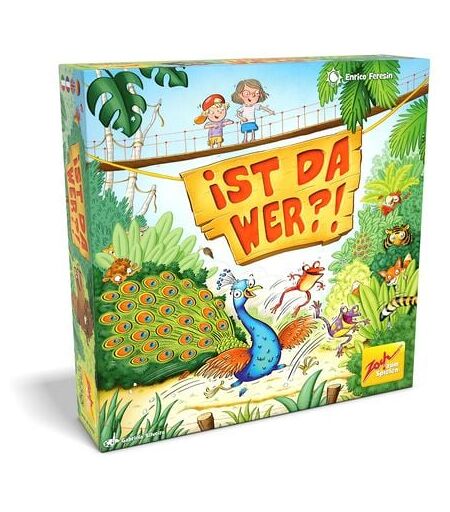 Zehn Tierpaare haben sich in einem großen dreidimensionalen Gebüsch versteckt. Von ihnen sind aber nur einige Farbkleckse durch die Sichtschlitze zwischen den Zweigen zu sehen. Seht genau hin und findet heraus, welche Farben nicht da sind und erkennt so, welche Tiere sich hinter dem Dickicht ganz unten am Busch unsichtbar gemacht haben. In dieses Versteck ziehen sich in jeder Spielrunde neue Tiere zurück. Wer herausgefunden hat, welche Tiere sich gerade im Dickicht verborgen haben, schnappt sich ganz schnell deren Holzfigur! Als Belohnung bekommt jeder der richtig liegt Bildkärtchen, aus denen er seinen eigenen kleinen Zoo zusammenpuzzeln darf. „Ist da wer?! von Zoch ist das lustig bunte Tier-Such-Spiel rund um sichtbare und unsichtbare Farben. Es fördert Beobachtung, Kombinationsgabe und Aufmerksamkeit von Kindern. Ausgedacht hat es sich Autor Enrico Feresin. Illustriert wurde es von Gabriela Silveira. ...