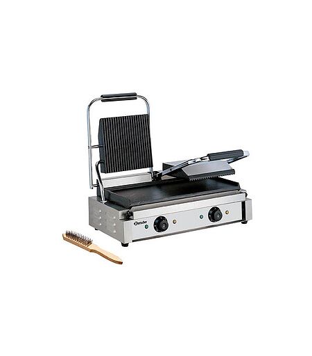 Für spontane Grillabende: der Bartscher 3600 2GR KontaktgrillFalls Sie auf dem Balkon nur elektrisch grillen dürfen oder möchten, dann haben Sie mit dem Bartscher 3600 2GR Kontaktgrill das ideale Gerät zur Hand. Ob Steaks, Würstchen oder Grillgemüse – dank ausgeklügelter Bauweise und hochwertigen Materialien werden diese sicherlich lecker. So steht einem gemütlichen Grillabend nichts mehr im Wege.Interessantes auf einen BlickMit dieser Eigenschaft punktet das Exemplar: Kontrollleuchte.Was das Produkt besonders machtUnd das macht den Artikel besonders: Anschlusswert: 3,6 kW, Spannung: 230 V, Frequenz: 50/60 Hz, Steuerung: Knebel, Fettauffangbehälter, 2 Grilleinheiten, Heizzonen getrennt regelbar, Temperaturbereich: 50 °C - 300 °C, Maße untere Grillplatten (BxT): 47,0 x 23,0 cm, Maße obere Grillplatten (BxT): 21,5 x 21,5 cm, Ausführung Grillfläche: oben gerillt, unten glatt, Material Grillplatten: Gusseisen emailliert, Gewicht: 23,3 kg.Mit welcher Leistung Sie rechnen könnenDas Exemplar weist eine elektrische Leistung von 3600 W auf.Woraus besteht das Modell?Aus Edelstahl hergestellt, bietet das Produkt alle positiven Eigenschaften dieses Materials, so z.B. enorme Langlebigkeit, Strapazierfähigkeit und leichte Reinigung. Folgende Maße hat das Produkt: Tiefe: 39,5 cm Höhe: 21,0 cm Breite: 57,0 cm.Trifft, wonach Sie suchen?Dann bestellen Sie den Bartscher 3600 2GR Kontaktgrill hier bei uns online und Sie erhalten die Lieferung inklusive 1 Reinigungsbürste. ...