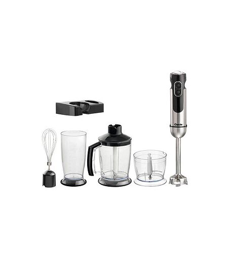 Bartscher Stabmixer-Set schwarz, silber 700 W – für jede Aufgabe gewappnetFür perfekte Konsistenzen ist das Bartscher Stabmixer-Set schwarz, silber 700 W ein wahrer Spezialist. Egal ob feine Pürees, sämige Saucen, würzige Dressings oder gesunde Smoothies. Mit seiner starken Leistung und dem vielseitigen Zubehör wird Ihre Küchenarbeit dank diesem praktischen Set nicht nur einfacher, sondern auch schneller und präziser.Scharfes Edelstahl für beste Schneidergebnisse17000 U/Min. schafft das Gerät ohne Probleme. Für eine optimale Verarbeitung verfügt das Modell über eine Leistung von 700 W. Die tatsächlich aufgewendete Leistung lässt sich manuell anhand von 5 Stufen einstellen. Mittels qualitativ hochwertiger und besonders scharfer Edelstahlklingen wird alles sauber und rasch verarbeitet. Das Material gewährleistet konstante Schärfe, auf die Sie sich tagtäglich in Ihrer Küche verlassen können.Das ist besondersUnter den zahlreichen Produkteigenschaften gilt es die folgenden hervorzuheben: Ausgelegt für Aufschäumen, Mixen, Pürieren, Quirlen, Rühren, Schlagen, Zerkleinern, ergonomisches Design, einfach umsteckbar für die verschiedenen Funktionen, Länge Mixstab: 207 mm, Kabellänge: 1,2 m, Steuerung mit Knopf.Langlebige BehälterDer Behälter des Modells ist besonders pflegeleicht und widerstandsfähig, denn er besteht aus Kunststoff. Zwei zusätzliche Spezialbehälter mit integriertem Sichelmesser bieten besonders leistungsstarkes und geschütztes Zerkleinern. Sie erhalten das Produkt in den Farben schwarz, silber.Wichtiges auf einen BlickFolgende praktische Eigenschaft weist das Modell auf: elektronische Steuerung.Das Modell entspricht Ihren Anforderungen?Sie erhalten die Lieferung des Bartscher Stabmixer-Sets schwarz, silber 700 W inklusive 1 Mixstab, 1 Schneebesen (Chrom), 1 Behälter (800 ml), 2 Spezialbehälter mit Sichelmesser (500 ml + 1.250 ml), 1 Deckel für Spezialbehälter, 2 Antirutsch-Untersetzer, 1 Wandhalterung. ...