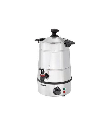 In Sekundenschnelle zum Wunschgetränk – der Bartscher Heißwasserspender schwarz 5,0 l 1800 WHeißes Wasser auf Knopfdruck liefert der Bartscher Heißwasserspender schwarz 5,0 l 1800 W, der in keiner Firmenkantine fehlen darf. Das Gerät verfügt über mehrere Einstellmöglichkeiten, so dass ein jeder sein Getränk nach Belieben zubereiten kann und das bei einfachster Bedienung.Schnelle ErhitzungDie Kontrollleuchte informiert, wenn der Inhalt bereit ist zur Verwendung. Das Gerät hat ein Fassungsvermögen von 5,0 l und ist sehr benutzerfreundlich in der Handhabung. Mit einer Leistung von 1800 W wird Ihr Wasser in Rekordzeit aufgekocht.Das ist besondersDer Artikel verfügt über diese spezielle Eigenschaft: thermostatische Temperaturregelung.Temperatur individuell einstellbarFür eine individuelle Anpassung an Ihre Bedürfnisse lässt sich die Temperatur, auf die das Wasser erhitzt werden soll, stufenlos einstellen. Die wählbare Temperatur ist hierbei 30°C - 100°C. Dies ist vor allem beim Kochen von Tee von Vorteil, da verschiedene Sorten eine unterschiedliche Brühtemperatur erfordern. So kann sich das Aroma optimal entfalten.Behälter aus EdelstahlAbwischen und entkalken funktioniert bei dem Bartscher Heißwasserspender schwarz 5,0 l 1800 W sehr einfach, denn er besteht aus Edelstahl und ist dadurch sehr strapazierfähig und stabil. Auch was die Optik betrifft, sorgt das Material für das gewisse Etwas.Abnehmbarer DeckelDer Deckel lässt sich vollständig abnehmen, um den Behälter einfach reinigen zu können.Passt zu dem, wonach Sie suchen?Sie erhalten das Gerät in der Farbe silber/schwarz. Bestellen können Sie den Bartscher Heißwasserspender schwarz 5,0 l 1800 W ganz bequem hier bei uns im Online-Shop. ...