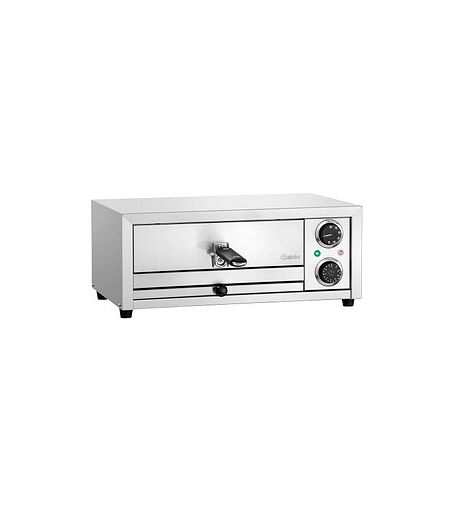 Einfach Pizza von Grund auf selbst herstellen mit dem Bartscher ST350 TR Pizzaofen elektrischMit dem Bartscher ST350 TR Pizzaofen elektrisch gelingen Ihre Pizzakreationen das nächste Mal besonders gut, denn mit diesem Gerät können Sie diese italienische Leckerei nicht nur leicht und schnell, sondern auch mit einem ausgezeichneten Geschmack backen.Das ist besondersSie suchen nach speziellen Features? Das bietet das Modell: Anschlusswert: 1,75 kW, Spannung: 230 V, 50/60 Hz, Geräte-Anschluss: steckerfertig, Backkammer: Edelstahl, 1 Backkammer für 1 Pizza mit Ø 34 cm, Ober- / Unterhitze nicht getrennt regelbar, Temperaturbereich: 50 °C - 300 °C, Pizzarost (Maße: B 340 x T 335 x H 5 mm) ist fest verbunden mit Ofentür und Griff, Timer: Wahlweise 0 - 15 Minuten oder Dauerbetrieb, Signalton nach Ablauf der Zeit, Aufheizzeit: 10 Min, herausnehmbare Krümelschublade, Maße innen (BxTxH): 35,0 x 34,5 x 7,0 cm, Gewicht: 14,6 kg.Praktisches im ÜberblickFolgende nützliche Eigenschaft hat das Modell zu bieten: Kontrollleuchte.Daraus besteht der Bartscher Pizzaofen elektrisch ST350 TRWeil es aus Edelstahl hergestellt ist, hat das Exemplar alle Vorteile dieses langlebigen, strapazierfähigen Materials zu bieten und zeigt auch nach langer Zeit kaum Abnutzungsspuren. Folgende Maße hat das Produkt: Tiefe: 57,0 cmHöhe: 21,5 cmBreite: 51,0 cmPasst zu dem, wonach Sie suchen?Bestellen können Sie den Bartscher ST350 TR Pizzaofen elektrisch schnell und bequem hier bei uns im Online-Shop. ...