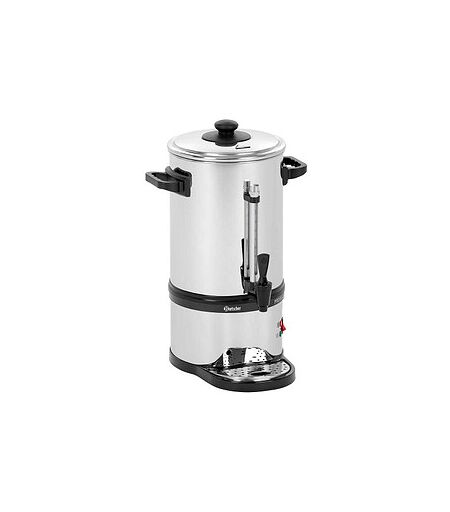 Lange nutzbar und leicht bedienbar – die Bartscher PRO II 40 Kaffeemaschine silber, 20 - 48 TassenEin absolutes Muss für alle, die öfters Gäste haben oder mehrere Kaffeetrinker auf einmal erfreuen möchten, ist die Bartscher PRO II 40 Kaffeemaschine silber, 20 - 48 Tassen. Diese Maschine ist nicht nur schnell aufgeheizt, sondern lässt sich auch leicht bedienen. So erhalten Sie im Handumdrehen ein leckeres Erzeugnis.Was ist besonders?Diese speziellen Features warten auf Sie: 2 getrennte Heizsysteme für Brüh- und Warmhaltefunktion, Kaffeemaschine kann mit oder ohne Filterpapier genutzt werden, Ausführung: Rundfilter, Edelstahlheizmulde, Aufbrühzeit 40 Minuten für 6,0 Liter, Warmhaltefunktion.Aus hochwertigem EdelstahlDas Gehäuse aus Edelstahl macht die Bartscher Kaffeemaschine PRO II 40 besonders langlebig, hochwertig und pflegeleicht. Sie wird auch nach jahrelangem Gebrauch kaum Abnutzungsspuren oder Kratzer aufweisen. Die Kanne ist ebenfalls aus Edelstahl. Hier erfahren Sie mehr zu den Abmessungen und dem Gewicht des Artikels:Breite: 31 cmTiefe: 32,0 cmHöhe: 48,0 cmGewicht: 3,2 kgSo viele Tassen ergibt ein DurchlaufDie Bartscher Kaffeemaschine PRO II 40 besitzt einen Wasserbehälter mit einer Kapazität von 6 l. Eine Füllung reicht somit für ca. 20 - 48 Tassen.Darum ist die Bedienung so einfachSie erhalten eine Meldung, falls einer der folgenden Vorgänge durchgeführt werden soll: Gerät entkalken, Warmhalten.Passt zu dem, wonach Sie suchen?Bei Bestellung der Bartscher PRO II 40 Kaffeemaschine silber, 20 - 48 Tassen erhalten Sie Ihre Lieferung inklusive Reinigungsschaber. ...