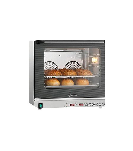 Bartscher AT90-DIG Heißluftofen 2670 W silber: ideal für anspruchsvolle ProfiköcheDer Bartscher AT90-DIG Heißluftofen 2670 W silber bietet Ihnen eine perfekte Alternative für Ferienwohnungen, Büroküchen oder Studentenzimmer oder allgemein für Küchen ohne ein herkömmliches Einbau-Modell. Das Gerät lässt sich dank seiner kompakten Größe an vielen Stellen gut platzieren und bei Bedarf auch leicht verstauen.Wie funktioniert das Gerät?Für die Zubereitung Ihrer Gerichte steht Ihnen folgender Heiz-Modus zur Verfügung: Umluft. Die Ofentemperatur ist im Bereich von 50 °C - 300 °C stufenlos einstellbar.Mit diesen Besonderheiten punktet der Bartscher AT90-DIG Heißluftofen 2670 W silberFolgende besonderen Eigenschaften hat der Artikel: Anschlusswert: 2,67 kW, Spannung 230 V, Frequenz 50Hz, Geräte-Anschluss: steckerfertig, elektronische Steuerung, Digital-Anzeige für Temperatur und Zeit, Kontrollleuchte: Aufheizen, Ein/Aus, Thermostat, Timer, Schutzart: IPX3, Aufheizzeit: ca. 8 Min (150 °C), 4 Einschübe in 43,8 x 31,5 cm Format, abgerundete Backkammer, Auflageschienen herausnehmbar.So viel Raum ist gebotenMit Innenmaßen von 46,0 x 37,0 x 35,0 cm (BxTxH) haben Sie ausreichend Platz für kleinere Gerichte, die dank der kompakten Gerätegröße viel rascher und energieeffizienter zubereitet sind als in großen Öfen. Selbst eine Tiefkühlpizza in Standardgröße hat Platz. Dank der Außenmaße von 59,5 x 61,5 x 58,0 cm sind Sie bei der Unterbringung des Geräts in Ihren Räumen sehr flexibel.Beste Sicht auf Ihr Essen dank InnenraumbeleuchtungUm zu verhindern, dass Ihre Speisen zu lange erhitzt werden, können Sie sie aufgrund der Garraumbeleuchtung stets gut beobachten und bei Bedarf das Gerät vorzeitig ausschalten.Doppelt verglaste TürEine Doppelglastür gewährleistet, dass die Hitze im Inneren bleibt. Aus Edelstahl hergestellt, ist das Produkt sehr solide und robust.Programmieren Sie einfache die Heizdauer mit dem Timer!Sie können mittels Zeitschalter eine Heizdauer von bis zu 99 Min. programmieren. Wenn diese abgelaufen ist, werden Sie durch ein Alarmsignal darauf hingewiesen. Mit dieser Funktion ersetzen Sie quasi eine klassische Eieruhr.Die technischen Daten im ÜberblickAußenmaße: 59,5 x 61,5 x 58,0 cm (BxTxH)Innenmaße: 46,0 x 37,0 x 35,0 cm (BxTxH)Leistung: 2670 WGewicht: 37,0 kgHört sich gut an, richtig?Bei Bestellung des Bartscher AT90-DIG Heißluftofens 2670 W silber erhalten Sie Folgendes mit der Lieferung inklusive: 4 Bleche. ...