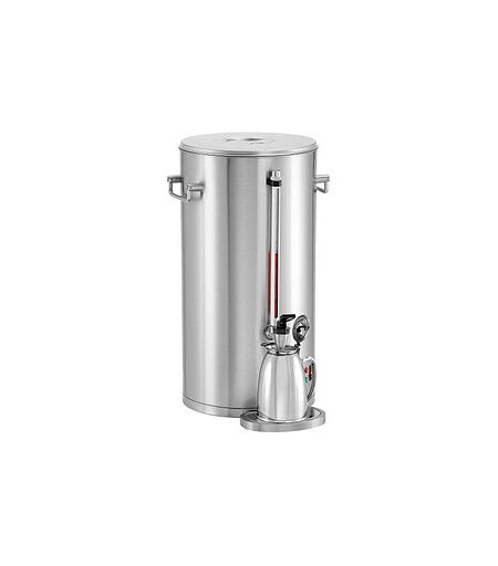 Bartscher Silver 1300 Kaffeemaschine silber, 40 - 100 Tassen – lange nutzbar und leicht bedienbarMit der Bartscher Silver 1300 Kaffeemaschine silber, 40 - 100 Tassen erhalten Sie das beliebte Heißgetränk frisch gebrüht, wohlriechend und aromatisch gleich tassenweise und bereit zum Ausgießen aus der praktischen Kanne.Die BesonderheitenFreuen Sie sich auf diese besonderen Eigenschaften: Lichte Höhe Ablasshahn: 125 mm (145 mm ohne Abtropfschale), Doppelwandig, 2 getrennte Heizsysteme für Brüh- und Warmhaltefunktion, Kaffeemaschine kann mit und ohne Filterpapier genutzt werden, Füllstandsensor, Abtropfschale abnehmbar, Griffe abklappbar, Ausführung: Rundfilter, Edelstahlheizmulde, Aufbrühzeit70 Minuten für 13,2 Liter.Hochwertige und langlebige MaterialienDas Gehäuse aus Edelstahl macht das Gerät besonders langlebig, hochwertig und pflegeleicht. Auch nach jahrelangem Gebrauch wird es edel glänzen wie am ersten Tag. Das Material, aus dem die Kanne besteht, ist auch Edelstahl. Hier können Sie einen Blick auf die Maße und das Gewicht des Produkts werfen:Breite: 37 cmTiefe: 36,0 cmHöhe: 53,3 cmGewicht: 6,4 kgTassenanzahl je BrühvorgangDer Tank für das Wasser verfügt über 13,2 l Fassungsvermögen. Aus einer vollständigen Befüllung erhalten Sie ca. 40 - 100 Tassen.Darum ist die Bedienung so komfortabelUm Ihnen das Leben so einfach wie möglich zu gestalten, verfügt die Bartscher Kaffeemaschine Silver 1300 über eine Kontrollanzeige für folgende Vorgänge: Brühvorgang beendet, Gerät entkalken, Wasser nachfüllen.Passt dieser Artikel zu Ihren Bedürfnissen?Beim Kauf der Bartscher Silver 1300 Kaffeemaschine silber, 40 - 100 Tassen erhalten Sie Ihre Lieferung inklusive 1 Reinigungsschaber, 1 Reinigungsbürste. ...