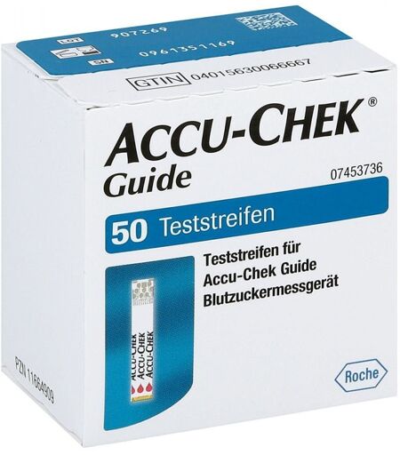 Anwendungsgebiet von Accu Chek Guide TeststreifenAccu Chek Guide Teststreifen dient der Blutzuckerbestimmung für das Accu-Chek Guide Set Gerät.Wirkstoffe / Inhaltsstoffe / ZutatenAccu Chek Guide Teststreifen enthält: