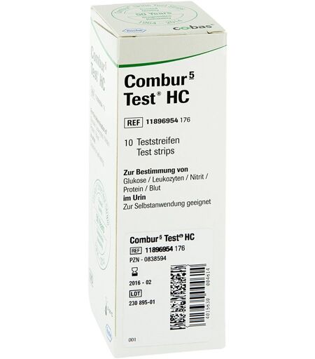 Wirkungsweise von Combur 5 Test Hc TeststreifenCombur 5 Test Hc Teststreifen sind Teststreifen, die folgende Stoffe im Urin nachweisen können: