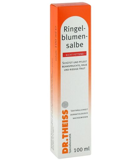 Die Haut fühlt sich zart und geschmeidig an. Die Salbe kann Rötungen und Wundwerden vorbeugen und fördert das Abheilen kleinerer Hautverletzungen.Wirkstoffe / Inhaltsstoffe / ZutatenDr.theiss Ringelblumen Salbe nicht fettend enthält: RingelblumenextraktGegenanzeigenBei bekannter Überempfindlichkeit gegenüber einem der oben genannten Inhaltsstoffe sollte dieses Produkt nicht angewendet werden.DosierungAnwendungsempfehlung von Dr.theiss Ringelblumen Salbe nicht fettend: