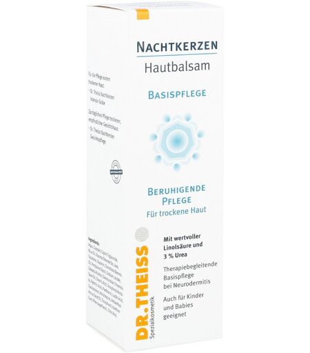 Trockene und von Neurodermitis betroffene Haut ist wesentlich empfindlicher als normale Haut. Es hat einen sehr geringen Fett- und Feuchtigkeitsgehalt, der durch eine Störung der Lipidbarriere der Haut verursacht wird. Durch die gebrochene Barriereschicht ist es deutlich anfälliger gegenüber schädlichen äußeren Einflüssen.Wirkungsweise von Dr.theiss Nachtkerzen HautbalsamDr.theiss Nachtkerzen Hautbalsam basiert auf den wertvollen Inhaltsstoffen des Nachtkerzenöls, wie den natürlichen essentiellen Fettsäuren Cis-Linolensäure und Gamma-Linolensäure. Die Produkte helfen der Haut, ihre wichtige Schutzfunktion gegen Umwelteinflüsse zu regenerieren, indem sie die Haut vor dem Austrocknen schützen. Körperpartien wie die Armbeuge und die Kniekehle sind besonders von sehr trockener Haut und Neurodermitis betroffen.
