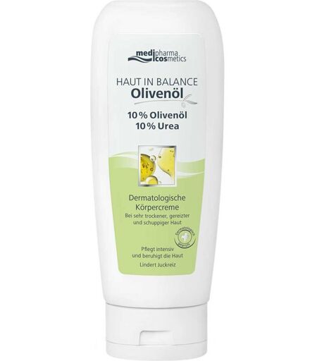 Anwendungsgebiet von Haut In Balance Olivenöl Dermatologische Körpercreme 10%Haut In Balance Olivenöl Dermatologische Körpercreme 10% mit der Wirkstoffkombination aus 10 % Olivenöl und 10 % Urea bei sehr trockener, gereizter und schuppiger Haut. Haut In Balance Olivenöl Dermatologische Körpercreme 10% pflegt intensiv und beruhigt die Haut, lindert Juckreiz. Auch zur unterstützenden Pflege bei Neurodermitis und sehr trockener Haut. Helfen Sie Ihrer Haut, ihr natürliches Gleichgewicht wiederherzustellen.