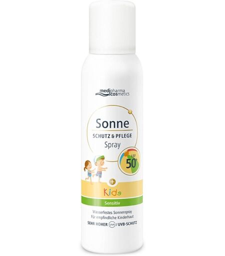 Anwendungsgebiet von medipharma cosmetics Sonne Schutz & Pflege KIDS LSF 50+ SprayDas wasserfeste medipharma cosmetics Sonne Schutz & Pflege KIDS LSF 50+ Spray wurde speziell für empfindliche Kinderhaut entwickelt. Die sanfte Sensitiv-Formel bietet einen sehr hohen und zuverlässigen Sonnenschutz mit Lichtschutzfaktor 50+, der sich besonders für zarte Kinderhaut eignet – sowohl im Gesicht als auch am Körper.Eltern kennen das zu gut: Kaum ist die Sonnencreme aufgetragen, klebt der Sand an kleinen Händen und Beinen und das Eincremen wird zur Herausforderung. Doch keine Sorge – der ultraleichte, nicht fettende Sprühnebel des Aerosol-Sprays zieht schnell ein und hinterlässt ein angenehm weiches Hautgefühl. Das enthaltene Glycerin spendet Feuchtigkeit, während Vitamin E antioxidativ wirkt und die Hautbarriere stärkt. So bleibt die Haut nicht nur geschützt, sondern auch geschmeidig gepflegt.Die wasserfeste Formel hält auch beim Planschen und Spielen stand – dennoch sollte der Schutz regelmäßig erneuert werden, besonders nach dem Baden, Abtrocknen oder Schwitzen. Dank der praktischen Sprühfunktion ist die Anwendung kinderleicht – ob im Schwimmbad, am Meer oder beim Spielen auf der Wiese. Das ultraleichte Sonnenspray legt sich wie ein feiner Film auf die Haut und muss nicht extra mit den Händen verteilt werden.Zudem ist das Sonnenspray frei von Octocrylenen, Octinoxaten und Oxybenzonen. So können kleine Wassernixen und große Entdecker unbeschwert in die Sonne eintauchen.Nur das Beste für die Haut: Nach diesem Grundsatz haben wir von medipharma cosmetics verschiedene Produkte zum Sonnenschutz entwickelt. Die Sonnenpflegeprodukte bieten eine breite Auswahl an Pflegeprodukten, die auf die unterschiedlichen Bedürfnisse der Haut abgestimmt sind. Sie beruhen auf jahrelanger Forschung und Entwicklung und werden unter strengen Qualitätskontrollen hergestellt – für einen zuverlässigen Schutz und intensive Pflege der Haut.Eigenschaften:Aerosol-Spray mi ...