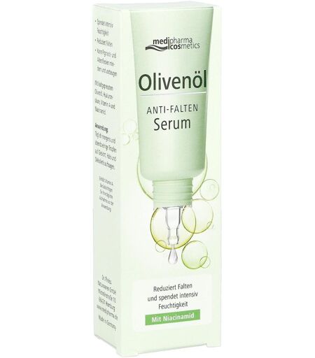 Täglich morgens und abends einige Tropfen auf Gesicht, Hals und Dekolleté auftragen.Information Das Olivenöl Anti-Falten Serum von medipharma cosmetics steht für ein samtig weiches