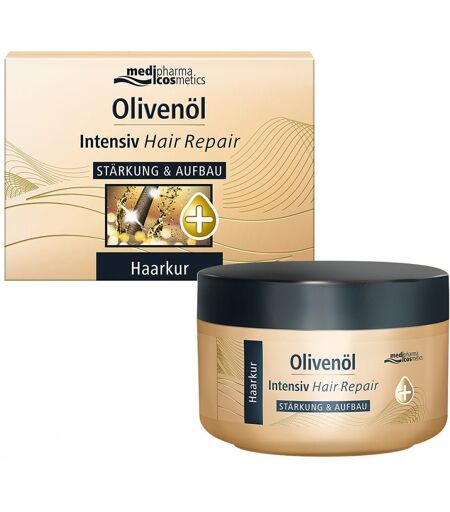 Anwendungsgebiet von Olivenöl Intensiv Hair Repair HaarkurOlivenöl Intensiv Hair Repair Haarkur ist eine pflegende Haarkur bei trocknem, geschädigtem und strapaziertem Haar. Mit Olivenöl Intensiv Hair Repair Haarkur können Sie die Widerstandfähigkeit Ihrer Haare steigern und ihnen Glanz und Geschmeidigkeit verleihen. Wirkungsweise von Olivenöl Intensiv Hair Repair HaarkurDer reichhaltige Pflegestoff von Olivenöl Intensiv Hair Repair Haarkur hilft dem ständig unter Belastungen ausgesetztem trockenem Haar mit haarähnlichen Flüssigbausteinen, Olivenöl und Vitaminen zu reparieren und glättet sanft die Haarstruktur. Die Haare werden durch den Pflegekomplex von Biotin und Provitamin B5 gekräftigt und die Haare fühlen sich seidenweich an. Wirkstoffe / Inhaltsstoffe / ZutatenWirkstoffe von Olivenöl Intensiv Hair Repair Haarkur: