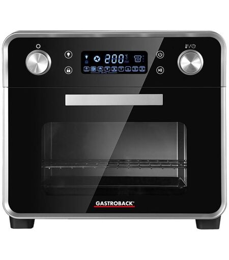 Gastroback Design Ofen Air Fry & Pizza 5-in-1 Pizzaofen, Heißluft-Fritteuse, Mini- Backofen, Grill-Drehspieß & Dörrgerät