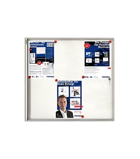 Der FRANKEN Schaukasten X-tra!Line silber 6x DIN A4 – praktische InformationsflächeÜberall dort, wo es wichtige Informationen zu vermitteln gibt, kommt der FRANKEN Schaukasten X-tra!Line silber 6x DIN A4 zur Verwendung. Man findet ihn sowohl in Unternehmen als schwarzes Brett als auch in Werkstätten für Anweisungen und Vorschriften. Die Einsatzmöglichkeiten sind besonders vielseitig.Was das Produkt besonders machtIn dieser Ausführung kommt das Produkt zu Ihnen: magnethaftend, beschriftbar. Wichtig: Der EinsatzbereichGeeignet ist der FRANKEN Schaukasten X-tra!Line silber 6x DIN A4 für den Innenbereich. Somit kann er z.B. eingesetzt werden, um wichtige Informationen in Büros zu präsentieren. Wie viel passt rein? Das Modell bietet ausreichend Platz für Dokumente in den Maßen 6x DIN A4. Insgesamt liegen die Maße bei 68,0 x 3,0 x 73,0 cm (BxTxH).Informationen zur MontageDas Modell ist perfekt für die Montage an der Wand geeignet. Damit Sie gleich loslegen können, wird Ihnen das Montagematerial direkt mitgeliefert. Damit Sie besonders flexibel sind, können Sie das Modell entweder im Hochformat oder Querformat aufhängen.Material-InformationenDie Scheibe besteht aus Acrylglas. Bestehend aus Aluminium erhalten Sie ein überaus robustes Produkt, das für den dauerhaften Einsatz optimal geeignet ist.Konnte dieses Modell Sie überzeugen?Beim Kauf des FRANKEN Schaukastens X-tra!Line silber 6x DIN A4 erhalten Sie Ihre Lieferung inklusive Montagematerial. ...