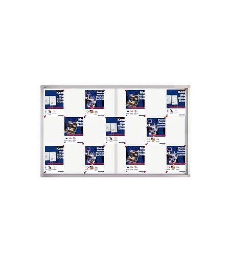 Zur Präsentation Ihrer Informationen – der FRANKEN Schaukasten PRO silber 21x DIN A4Der schnellste Weg, um Ihre Informationen zu veröffenlichen, ist dieser: Blätter ausdrucken und in den FRANKEN Schaukasten PRO silber 21x DIN A4 hängen. Genau richtig für eine übersichtliche Präsentation Ihrer Werbemittel und Mitteilungen!Platz für 21x DIN A4 DokumenteÜberall im Innenbereich kann den FRANKEN Schaukasten PRO silber 21x DIN A4 zum Einsatz kommen. Im Eingangsbereich, bei den Stempeluhren, im Flur – Sie entscheiden! Wie viel passt rein? Dokumente in den Maßen von 21x DIN A4 können hier ihren Platz finden. Insgesamt liegen die Maße bei 161,5 x 4,6 x 99,0 cm (BxTxH).Folgende Besonderheiten erwarten SieDas Produkt kommt in folgender Ausführung zu Ihnen: Schiebetüren, magnethaftend, beschriftbar. Material-InformationenDie Scheibe besteht aus ESG 4mm und verfügt somit über eine erhöhte Stoßfestigkeit, Schlagfestigkeit und Temperaturbeständigkeit. Bestehend aus Aluminium, lackiertes Stahlblech erhalten Sie ein überaus stabiles Produkt, das für den dauerhaften Einsatz optimal geeignet ist.Kann im Querformat genutzt werdenDas Modell ist perfekt für die Montage an der Wand geeignet. Das Montagematerial erhalten Sie zur Lieferung inklusive, somit können Sie direkt loslegen. Die Montage erfolgt im Querformat.Konnte dieses Modell Sie überzeugen?Wenn Sie sich für den FRANKEN Schaukasten PRO silber 21x DIN A4 entscheiden, erhalten Sie Montagematerial zur Lieferung inklusive. ...
