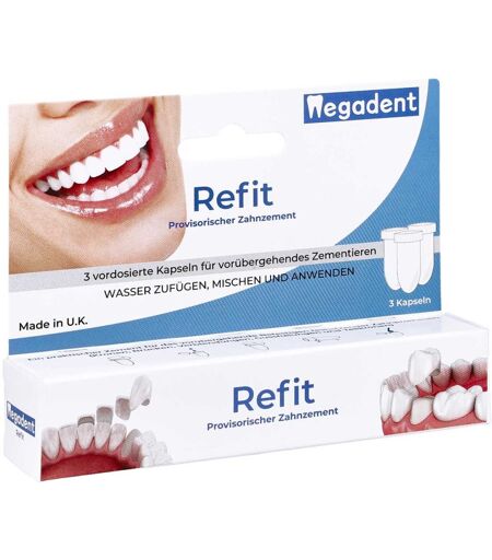 InformationWas ist Dr. Denti Refit und wofür wird es angewendet?Dr. Denti Refit ist ein zuverlässiges Zahnreparaturmittel, das speziell zur schnellen und einfachen Reparatur abgebrochener Zahnkanten, beschädigter Zahnfüllungen oder kleiner Zahndefekte entwickelt wurde. Es ermöglicht eine temporäre Lösung, um die Zahnstruktur bis zum Zahnarztbesuch zu stabilisieren und Beschwerden zu lindern.Dieses innovative Produkt ist ideal für: Schnelle Hilfe bei abgebrochenen Zähnen Übergangslösungen bei beschädigten Zahnfüllungen Schutz empfindlicher Zahnstellen vor äußeren EinflüssenDr. Denti Refit ist einfach anzuwenden und bietet eine effektive Soforthilfe bei Zahnproblemen.Wie wirkt Dr. Denti Refit?Dr. Denti Refit basiert auf einem speziell entwickelten Zahnreparaturmaterial, das direkt auf die betroffene Stelle aufgetragen wird. Es haftet sicher am Zahn, schützt empfindliche Stellen und verhindert, dass Speisereste oder Bakterien in beschädigte Bereiche eindringen.Die temporäre Zahnreparatur sorgt für: Schutz und Stabilisierung: Abdeckung und Schutz der defekten Zahnoberfläche. Schmerzlinderung: Abschirmung empfindlicher Stellen gegen Wärme, Kälte und Berührung. Praktische Übergangslösung: Temporäre Reparatur bis zum Zahnarztbesuch.Für wen ist Dr. Denti Refit geeignet?Dr. Denti Refit ist ideal für: Menschen mit abgebrochenen Zähnen oder beschädigten Zahnfüllungen Personen, die eine temporäre Lösung benötigen, bevor sie einen Zahnarzt aufsuchen können Anwender, die eine schnelle und unkomplizierte Selbsthilfe bei kleineren Zahndefekten suchenDas Produkt ist für Erwachsene und Jugendliche geeignet. Es sollte jedoch nicht als dauerhafter Ersatz für eine zahnärztliche Behandlung verwendet werden.Wie wird Dr. Denti Refit angewendet?Anwendungsschritte:Reinigen Sie die betroffene Zahnfläche gründlich und trocknen Sie sie ab.Entnehmen Sie eine kleine ...