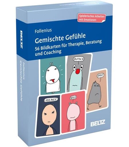 Die »Gemischten Gefühle« sind Herzöffner mit Humor und Charme. Mit ihnen kann man mit sich selbst und anderen ins Gespräch kommen, leicht bleiben oder in die Tiefe gehen. Sie dienen als Einstieg oder Eisbrecher, wenn das Gespräch stockt. Spiellust, Fantasie und Kreativität werden geweckt. Die 56 Bildkarten zeigen nicht nur die bekannten Basisemotionen, sondern viele Zwischentöne, Widersprüche und Mischformen. Dabei lassen die minimalistisch gezeichneten Karten Spielraum für ganz subjektive Interpretationen, sind originell, witzig und anrührend. So bringen diese Karten Jugendliche zum Grinsen, Paare zum Sprechen, Gruppen zum Diskutieren, Kinder zum Lachen und zeigen so die bunte und vielfältige Welt der Gefühle. Das Booklet beschreibt zahlreiche Anwendungsmöglichkeiten der Karten. Geeignet für Einzel- wie Gruppensetting sowie unterschiedlichste Altersgruppen. Einsatzbereiche: Psychotherapie, Beratung, Coaching, Fort- und Weiterbildung, Intervision/Supervision, Schule, soziale und pädagogische Gruppenarbeit, Seminare und zu Hause ...