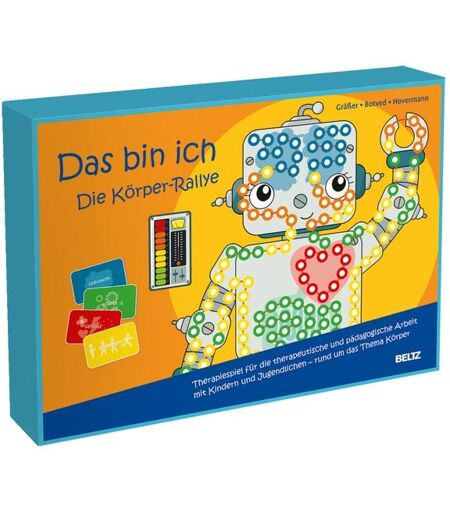 »Das bin ich! Wir Menschen sind ganz schön komplex: Wie wir uns fühlen, hängt nicht nur von Situationen und Erlebnissen ab, sondern auch davon, was wir denken und welche Reaktionen unser Körper zeigt. Es ist spannend, dieses Zusammenspiel von Gedanken, Gefühlen, Körper und Verhalten zu erkunden!« Ob als Gesprächseinstieg im Rahmen der Psychoedukation oder zur Bearbeitung der Themen Körperwahrnehmung, Gefühle und Gedanken, Genusstraining, Achtsamkeit und Verhalten in der Therapie: Die Körper-Rallye thematisiert die verschiedensten Themen rund um den Körper und die Zusammenhänge zwischen dem, was wir denken, fühlen, wie unser Körper reagiert und wie wir dann handeln. - Was kann einem alles »auf den Magen schlagen«? - Wie entstehen eigentlich Gefühle? - Was höre ich, wenn ich mir die Ohren zuhalte? - Und wie fühlt sich das an? Die Spieler und Spielerinnen sollen angeregt werden, das eigene Wissen zum Thema Körper bzw. Gedanken, Gefühle, Körperempfindungen und Verhalten zu reflektieren, zu erweitern und auch Wahlmöglichkeiten für das eigene Handeln zu erkennen. So erleben sie spielerisch, wie sie ihr Denken, Fühlen und Handeln hinterfragen und neue Wege erproben können. - Für 2-6 Spieler, ab 6 Jahren, ca. 30-45 Min. Spielzeit (variabel zu gestalten) - Für Einzel- und Gruppensetting geeignet - Umfangreiches Spielmaterial: Belohnungschips, 300 Fragekarten und eine große stabile Sinneskarte mit Fragen zu den 5 Sinnen - Zusätzliche Gewinnerurkunde, Ausmalbilder und Arbeitsblätter zum Download - Ausführliches Booklet mit Spielanleitung und Hintergrundinformationen für Therapeut:innen - Einsetzbar in Psychotherapie, Beratungsstellen, Einrichtungen der Kinder- und Jugendhilfe, Kinderpflegediensten, ambulanten Praxen, stationären Einrichtungen für Kinder und Jugendliche, Kinder- und Jugendpsychiatrie, Trauergruppen, Schulberatung u.v.m. ...