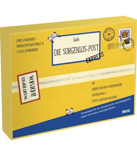 Niemand hat gerne Sorgen! Klein oder groß, hartnäckig oder sich auflösend, fies, klammernd, erdrückend, den Schlaf raubend – Sorgen können so verschieden sein und einen sehr belasten. Mit diesem Spiel lernen Kinder und Jugendliche die Möglichkeiten kennen, wie man mit seinen Sorgen umgehen kann, wie man sie auflöst, wer und was einem dabei helfen kann und wie man seine Sorge dann auch loswird. Sorgen gehören zum Leben dazu: Äußere oder innere Erfahrungen wie Wohnort- oder Schulwechsel, Mobbing, Krankheit, Trennung etc. sind für die Kinder oft Ereignisse, die ihnen viele Sorgen machen und zu deren Verarbeitung Zeit benötigt wird. Zeigt sich, dass die Sorgen anhalten oder gar zunehmen, ist es sinnvoll, professionelle Hilfe in Anspruch zu nehmen. Mit dem Spiel »Die Sorgenlos-Post« können Kinder und Jugendliche lernen, besser mit ihren Sorgen umzugehen. Das Spielbrett zeigt eine fantasievolle Welt voller Sorgengrübelchen in einer Post. Dort nehmen die Spieler und Spielerinnen auf ihrem Weg zur Sorgenlos-Paketstation ihre Sorgen genauer unter die Lupe und werden von den fiesen Grübelchen verfolgt. Zum Glück gibt es auch hilfreiche Tipps & Tricks sowie stärkende Ressourcenkarten. Das Spiel bereichert eine lebendige therapeutische und beraterische Arbeit mit Kindern und Jugendlichen! - 2-6 Spieler, ab 7 Jahre, ca. 35-45 Min. (variabel zu gestalten) - Für Einzel- und Gruppensetting - Einsetzbar in Psychotherapie, Sozialer Arbeit, Beratung, Pädagogik ...