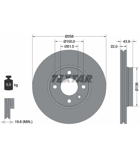 Bremsscheibe TEXTAR 92241503 vorne, belüftet, 1 Stück