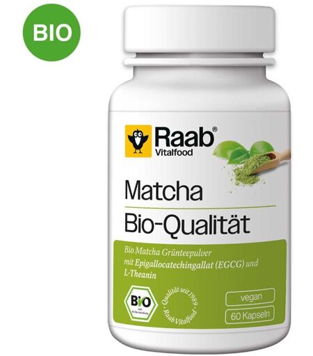 Raab Vitalfood Matcha Bio Kapseln sind ein Nahrungsergänzungsmittel mit Bio Matcha Grünteepulver aus Japan, 60 Kapseln à 400 mg.Wirkstoffe / Inhaltsstoffe / ZutatenRaab Vitalfood Matcha Bio Kapseln enthält: