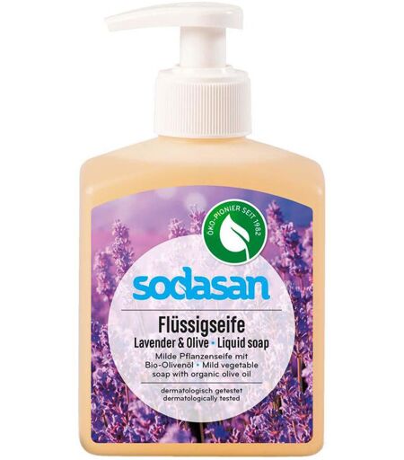 Die Hände sanft pflegen und dazu noch den entspannenden Duft von Lavendel genießen! Die nach NCS zertifizierte Flüssigseife von Sodasan verwöhnt alle Sinne. Sie enthält zu 100 % wertvolle Bio-Inhaltsstoffe und wird in einem schonenden Siedeverfahren mit Bio-Olivenöl hergestellt. Die Formel ist frei von Mikroplastik sowie synthetischen Farb-, Konservierungs- und Duftstoffen. Die Bio-Pflanzenölseife erfrischt mit ihren Lavendelnoten aus ätherischen Ölen. Mit dem Pumpspender ist die Dosierung der Seife kinderleicht. Inhalt 300 ml. ...
