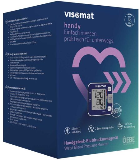 Für Handgelenkumfänge von 12,5 - 21,5 cmWirkstoffe / Inhaltsstoffe / ZutatenLieferumfang vn Visomat handy Handgelenk Blutdruckmessgerät: